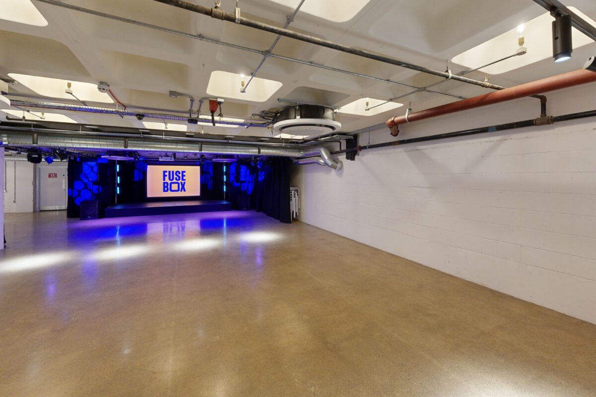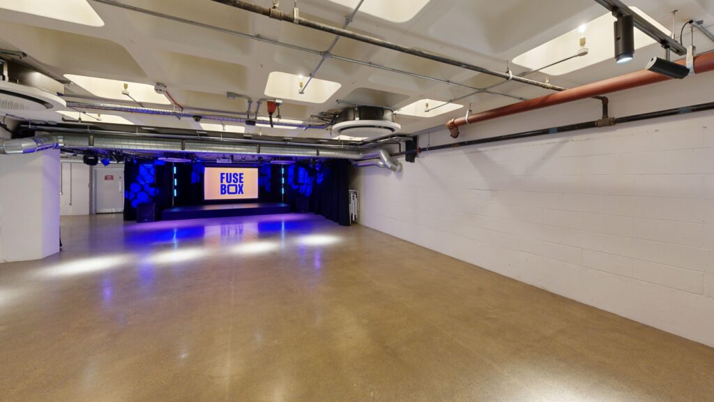 FUSEBOX is an expansive, flexible space suitable for any larger scale event. The venue has capacity for up to 200 people across the basement level. The space can be used for conferences, meetings, award ceremonies, parties and performances.